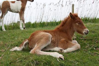 Zo verwacht je even geen veulens, ofwel er zijn geen tekenen dat het ieder moment raak zal zijn, dus tot onze verbazing liep er vanmorgen, 7-5-2009 in eens een extra veulen in de wei van de Damlander polder. Hoogstwaarschijnlijk is hij van gisteravond, 6-5-2009, gezien hij al helemaal opgedroogd en wat opgevuld is. 'Fáni is tot onze grote verbazing... een vos. En nee... niet bont... Zo sta je af en toe toch voor verrassingen. Mooi groot veulen, met mooie lange benen en veel tölt! Beweegt erg lekker en is behoorlijk zelfstandig... ofwel... Fenja heeft haar 'handen' vol! Niet verkeerd, dit mooie mannetje, ook al is hij vos!